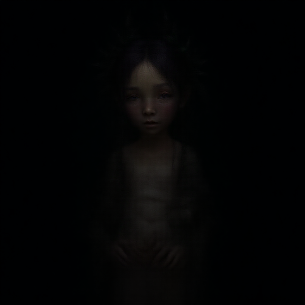 A scene emerges from the depths of night, featuring a single, enigmatic girl with a blend of plant and monster attributes, her striking red eyes piercing through the darkness. Her skin is a vivid tapestry of colors, highlighting her unique charm. Sporting a two-side up hairstyle and a visible navel, she stands with an air of mystery. The sharp focus captures the depth of the field with a bokeh effect, reminiscent of a 70mm lens in 8K, UHD, HDR quality. Echoes of duplication and mutation manifest subtly, with a cloned face, a slightly elongated neck, and extra fingers hinting at her otherworldly origins. Despite potential imperfections like out-of-frame elements, blurriness, or jpeg artifacts, the vision remains captivating, free from distractions like watermarks, logos, or text, presenting a surreal portrait that blurs the line between reality and imagination.