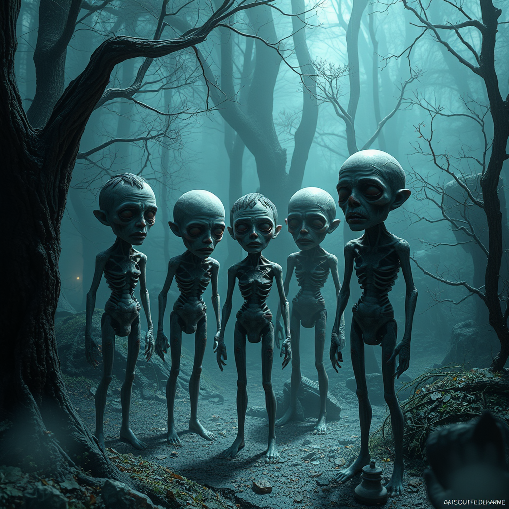 A serene world enveloped in stillness, where silent minds seek clarity amidst an inner nature; infused with a haunting presence, the scene is illuminated by ethereal volumetric lighting and atmosphere, evoking a sense of mysterious calmness. Highly detailed and vibrant in 4k, captured with the artistic flair of Bastien Lecouffe-Deharme. Rendered in a unique blend of contrasting elements; bizarre, surreal figures with deformed expressions and grotesque features standing against a finely detailed background. Mutated forms with extra limbs and disfigured proportions emerge amidst a palette of weird colors, blending traditional art with a digital twist. The surreal vision portrays cartoonish exaggerations - cloned faces, disjointed bodies, and abstract forms - conveyed in an intentionally flawed style. It's a dreamlike, blurry rendition of a fantasy where elements lose clear definition, making it both visually intriguing and disconcerting, reminiscent of a distorted video game world.