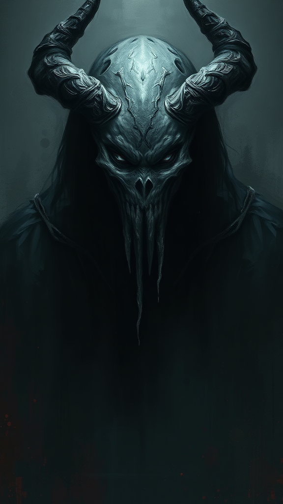 A sinister figure, masterful composition, combining elegance and brutality, digitally painted with a hushed majesty. Deep, intense dark tones create a brooding atmosphere, leaving a lasting impression on the viewer’s psyche. Crafted with meticulous attention to detail, this high-resolution piece captures the chilling presence of a deeply malevolent character. While maintaining a sense of eerie beauty, subtle imperfections manifest as deliberately grainy textures and blurred elements, evoking a sense of uncertainty. The anatomy and composition are ambiguously rendered, with hints of distortion adding to its haunting appeal. Despite the chaos of visual noise and imperfections reminiscent of jpeg compression, the artwork defies its flaws, embodying a unique and haunting masterpiece.