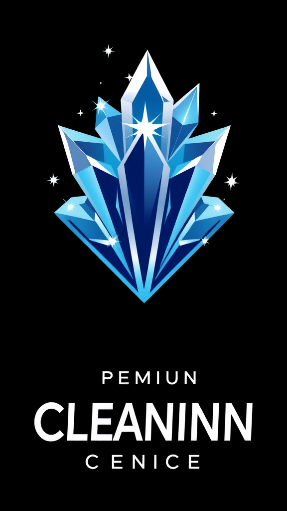A sleek and modern vector logo featuring a stylized crystal formation with sparkling elements, subtly integrated with vivid shades of blue and silver, symbolizing purity and cleanliness. The design incorporates dynamic lines and geometric shapes to convey efficiency and precision, while maintaining an elegant and professional appearance, reflecting the essence of a premium cleaning service.