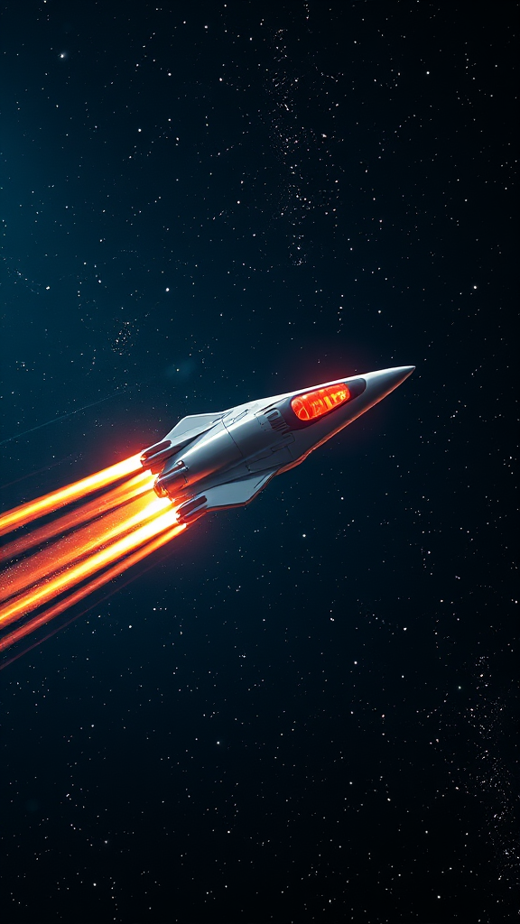 A sleek and shiny spacecraft zooms through a starry cosmos, leaving a trail of bright sparkles as it embarks on an adventurous journey across the infinite galaxy.