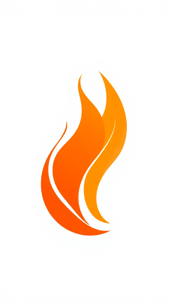 A sleek minimalist flame logo featuring a geometric abstraction with clean lines and simple shapes, in an orange monochromatic color scheme with subtle gradients, exuding a retro vibe and incorporating clever use of negative space, set against an isolated white background.