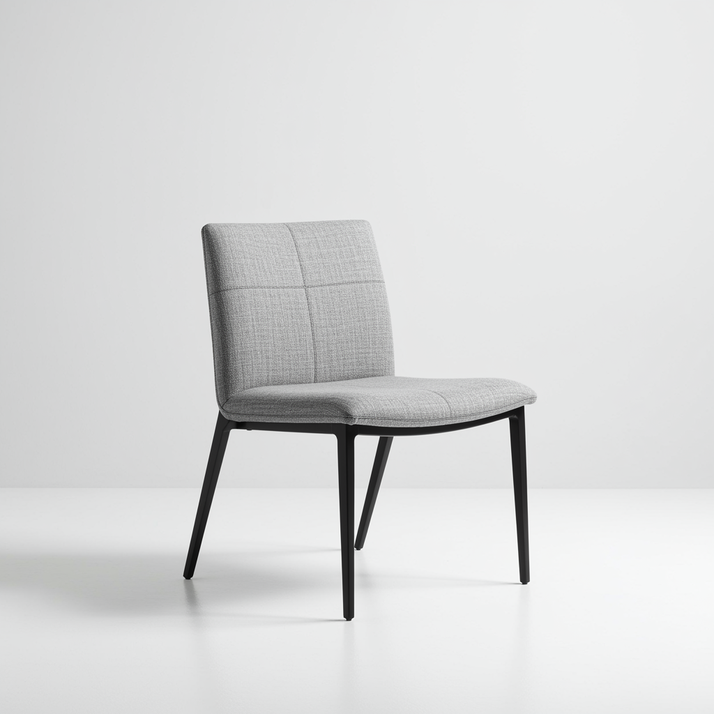A sleek, modern chair with clean lines and minimalist design, set against a pristine white studio backdrop. Photographed with a Hasselblad X1D II 50C using a 90mm lens, capturing the subtle texture of the fabric and the precision of fine stitching that highlights the craftsmanship of the piece. The soft lighting accentuates the contours and simplicity, creating a harmonious balance between form and function.