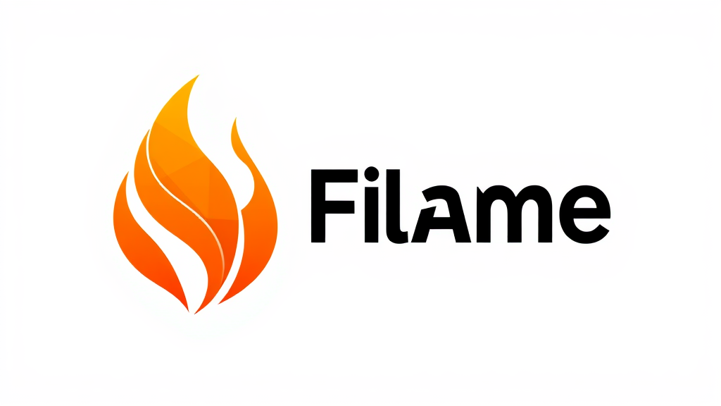 A sleek, modern flame logo featuring minimalist design elements, characterized by an orange monochromatic color scheme. It employs simple, geometric shapes and clean lines with a focus on geometric abstraction. The design creatively uses negative space and incorporates subtle gradients to add depth. The logo exudes a retro vibe while being presented on an isolated white background.