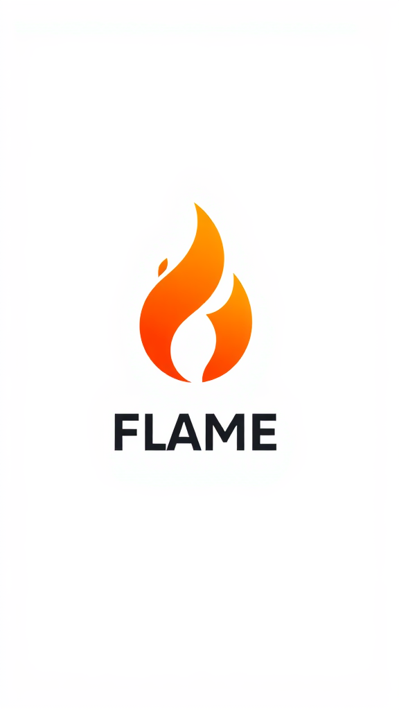 A sleek, modern flame logo with a minimalist design, featuring an orange monochromatic color scheme and simple shapes. It showcases clean lines and geometric abstraction, utilizing negative space effectively. The design incorporates subtle gradients to add depth, and possesses a retro vibe. The logo is presented on an isolated white background, maintaining a fresh and engaging look. Subtle alterations include a slight variation in the gradient pattern and a touch of asymmetry for a dynamic twist.