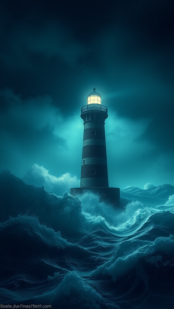 A solitary lighthouse stood tall against the backdrop of a turbulent sea, its beam slicing through the stormy night like a guardian's watchful eye, guiding weary sailors safely back to the shore. Amidst the deafening crash of waves and the whispered secrets of the wind, the light flickered, casting dancing shadows that whispered tales of old maritime legends and forgotten journeys.