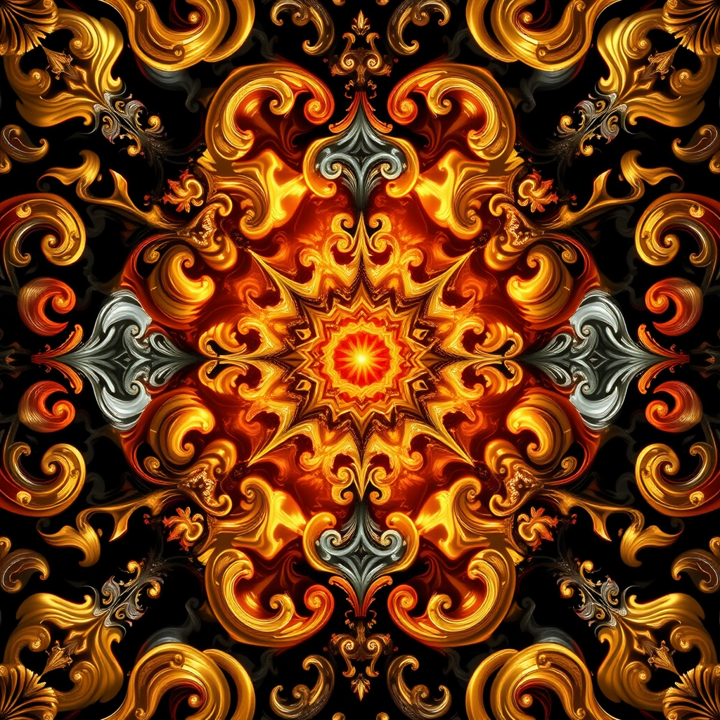 A source of future growth depicted through dramatic and elaborate emotive styles of Golden Baroque and Rococo, emphasizing beauty as a transcendental, seamless pattern. Symmetrical designs with large motifs reminiscent of the Sistine Chapel's ceiling. An 8K ultra-sharp image capturing spirals and swirls with Rococo elegance, featuring intricate cartouches and the ethereal dance of white smoke intermingling with rainbow ink suspended in water. The color palette celebrates gold, black, and rainbow hues in perfect symmetry. A 3D masterpiece with no blur, in sharp photorealistic detail. Bathed in cinematic lighting, rendered with Octane for an epic scene, revealing an extraordinary level of intricate detail and visual wonder.