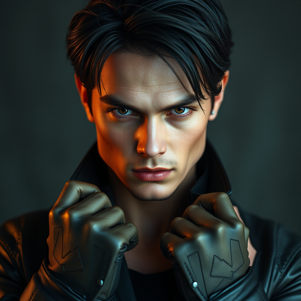 A striking portrait of a person dressed as an iconic action hero, exuding confidence and allure, centered and engaging the viewer with a direct gaze. The image captures a lifelike, photo-realistic quality with meticulously detailed skin and a full-length frame. The visual art features high detail, vibrant RAW colors, achieved through diffused soft lighting, and a shallow depth of field that enhances sharp focus. The hyperrealism and cinematic CGI lighting contribute to the 3D effect. Despite the intricacy, the image avoids common pitfalls of low resolution, such as jpeg artifacts and blurriness. The subject's anatomy is depicted accurately, with natural proportions, defined hands, and a well-structured face. The composition avoids any deformities or unnatural limb appearances, showcasing realistic and well-drawn features without unnecessary additions like text or watermarks.