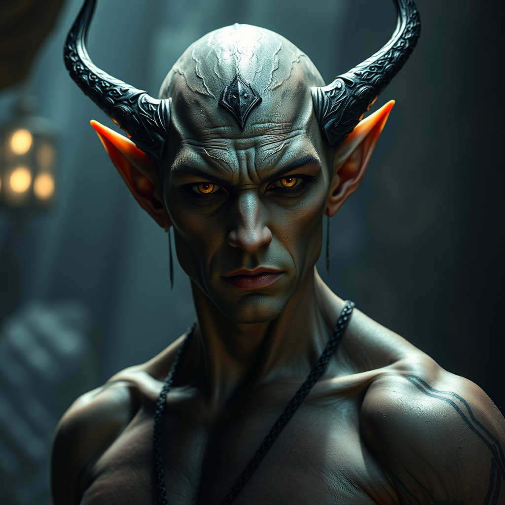 A strikingly malevolent elf antagonist, exuding an aura of dark allure, set against a fantasy backdrop with ethereal ambiance, illuminated by dramatic, cinematic lighting that highlights his perfectly sculpted features and flawless physique, crafted to evoke a sense of otherworldly elegance and menace in a scene of breathtaking visual mastery.
