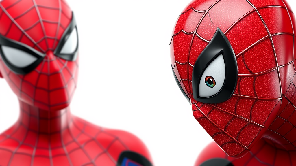 A stunning 3D render of Spider-Man with a glossy, glazed finish, showcasing Pixar and Disney influences. The character is portrayed against a pristine white background, highlighting the incredible detail of his textured skin and expressive, intricately detailed eyes. The image is rendered in 8k resolution, ensuring a beautiful and immersive visual experience. The style is both whimsical and realistic, capturing the charm of animation and the depth of high-resolution imagery. The overall feel is both familiar and refreshingly imaginative, with subtle creative touches enhancing the classic superhero design.