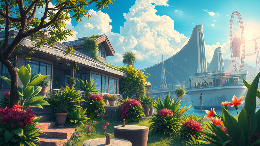 A stunning anime-inspired painting of a solarpunk summer day, capturing the essence of relaxation and harmony. Influenced by the styles of Tim Okamura, Victor Nizovtsev, Greg Rutkowski, and Noah Bradley, this masterpiece showcases intricate details and vibrant colors. The scene is bursting with life, featuring lush greenery and advanced eco-friendly technology integrated seamlessly into the environment. The artwork is a graffitied tapestry of beauty, with fine details that stand out, riding the wave of popularity on art platforms. The composition adheres to the golden ratio, creating balance and aesthetic pleasure, while subtle creative modifications bring a fresh perspective to the solarpunk theme.