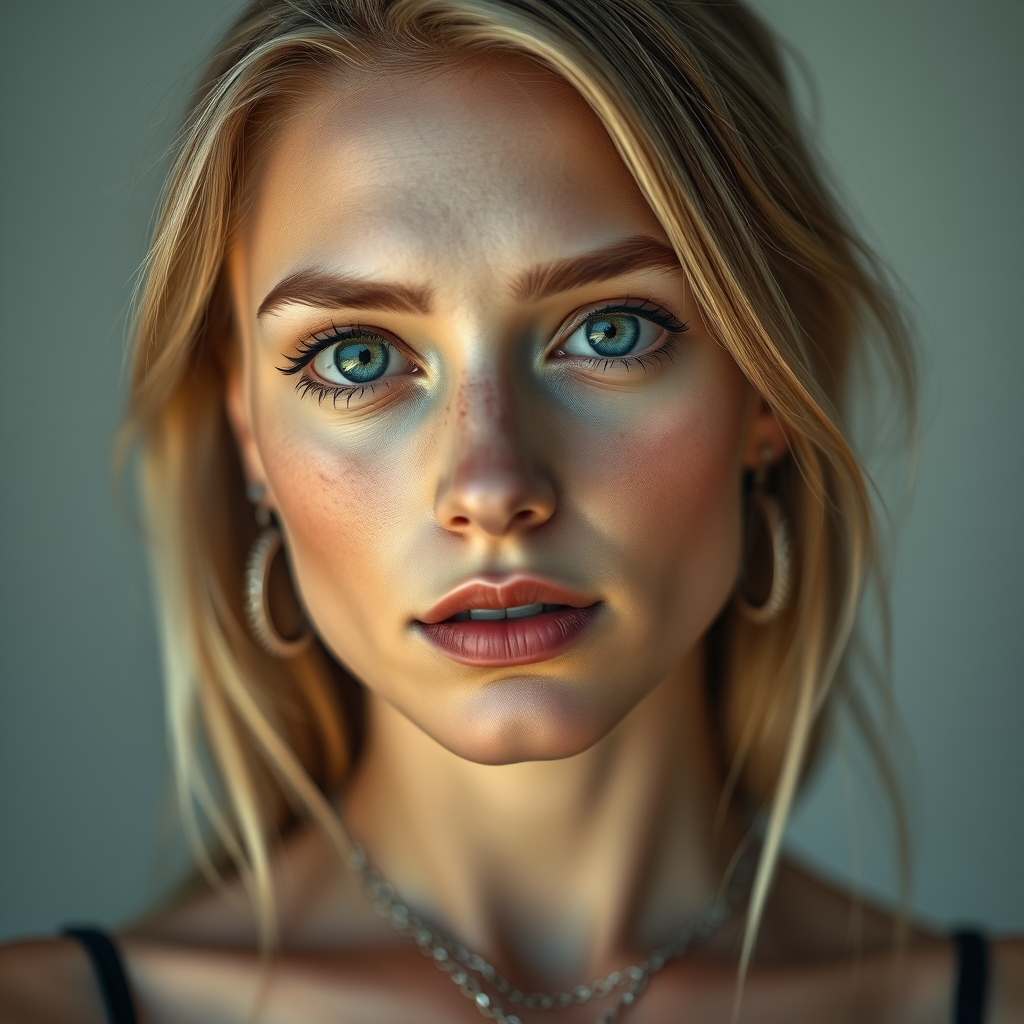 A stunning image of an OHWX woman gazing directly at the viewer, depicting a 40-year-old with a full body pose captured through a Leica 50mm lens. The photograph boasts exceptional quality and high resolution, enhanced by beautiful lighting reminiscent of Hasselblad photography. Her textured skin reveals natural imperfections under exquisite illumination; she possesses striking blonde hair. The artwork merges elements of airbrushed 3D renders, paintings, anime, manga, and illustration, showcasing a unique blend of styles. Despite intentional flaws, such as poorly drawn anatomy and floating limbs, the composition maintains its allure. The woman features big eyes and intriguing piercings, alongside elements of cartoons and smooth textures. Her picture-perfect face stands out, avoiding exaggerated features like big breasts or excessive jewelry, maintaining a captivating authenticity. The piece exemplifies creative complexity while preserving the essence of its initial inspiration.