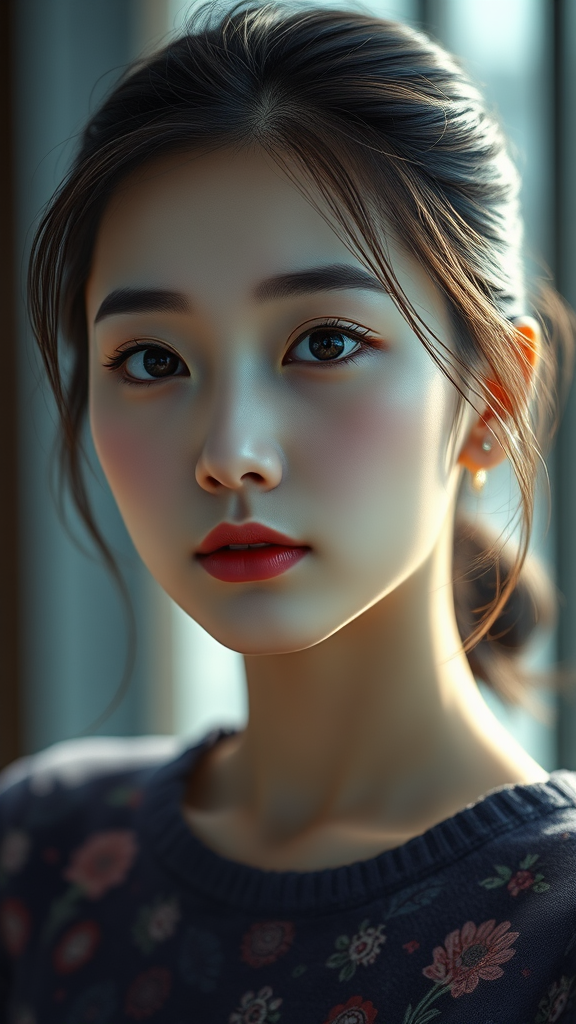 A stunning Korean girl with captivating features set against a softly blurred background enveloped in gentle volumetric haze and enhanced by global illumination. Bathed in natural lighting, the scene captures every detail in vivid clarity, resembling a high detail RAW color photo. This realistic portrait exudes ultra high resolution and presents a unified CG 8K wallpaper quality, with a focus on physics-based rendering to achieve a hyper-realistic effect. The composition is characterized by high contrast and rich colors, delivering a hyper-realistic lifelike texture reminiscent of cinestill 800 film. The use of an f1.6 lens enhances the depth of field, creating a beautifully cinematic aesthetic.