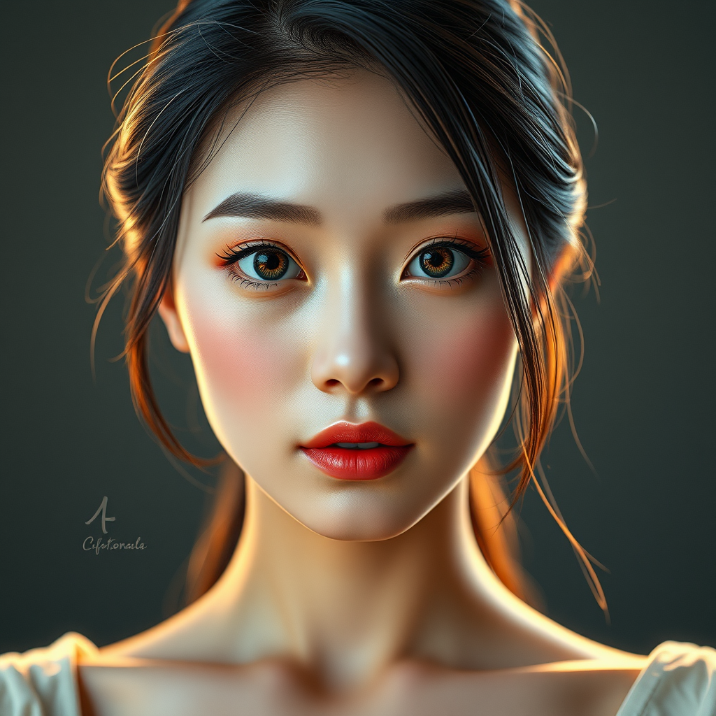 A stunning Korean woman, reminiscent of a K-pop idol, with perfectly symmetrical eyes, photographed in ultra-high resolution with photorealistic detail, capturing a full-length portrait in dramatic lighting. The image combines photography with elements of digital art, rendered in 8k hyperrealism using CGI techniques, creating a blend of 3D modeling, doll-like features, and anime-inspired illustration. While aiming for perfection, it avoids digital painting errors, ensuring the subject remains in frame with careful attention to anatomy and proportions, resulting in a visually appealing and flawless portrayal.