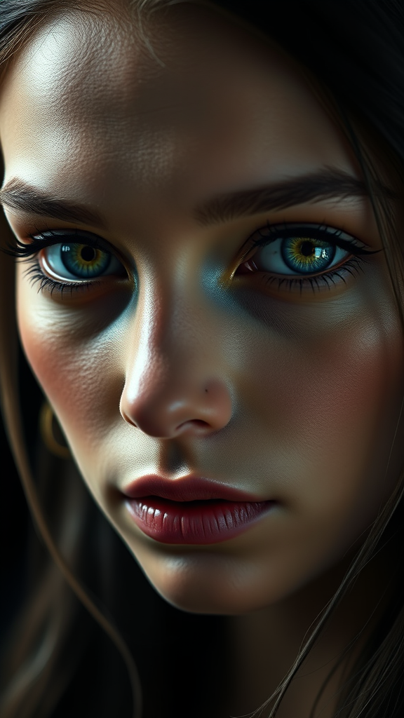A stunning portrait of a captivating elven healer set against a deep black background, showcasing mesmerically realistic reflective eyes with a flawless iris. The face is an epitome of beauty with alluring, feminine features, exuding an air of seduction. Inspired by the styles of David Kass