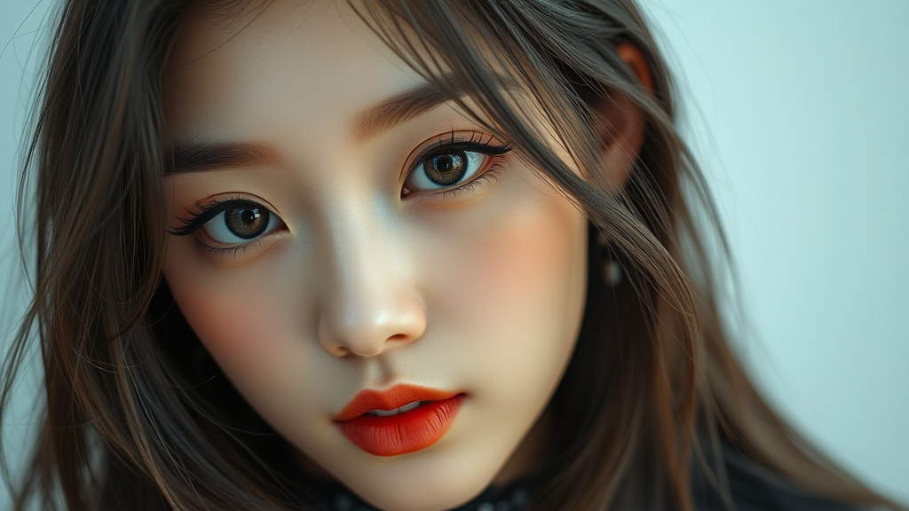 A stunning portrait of a K-pop idol, a beautiful Korean girl with captivating detailed eyes, captured in a high-detail RAW color photo. The photograph boasts ultra-high resolution, appearing as a highly detailed CG unified 8K wallpaper. Utilizing physics-based rendering and cinematic lighting, the image exudes photorealism and realism, with a masterpiece quality you'd see trending on Artstation. Captured with a Nikon D850 and a Kodak Portra 400 film stock, the shot highlights hyper-realistic skin texture, vibrant colors, and lifelike texture under dramatic lighting reminiscent of Unreal Engine's capabilities. This highly detailed, sharp, and rich color portrait showcases the best quality, ultra high-resolution attributes, creating a photorealistic digital art piece that stands out for its realism and fine detail, avoiding any imperfections or quality flaws.