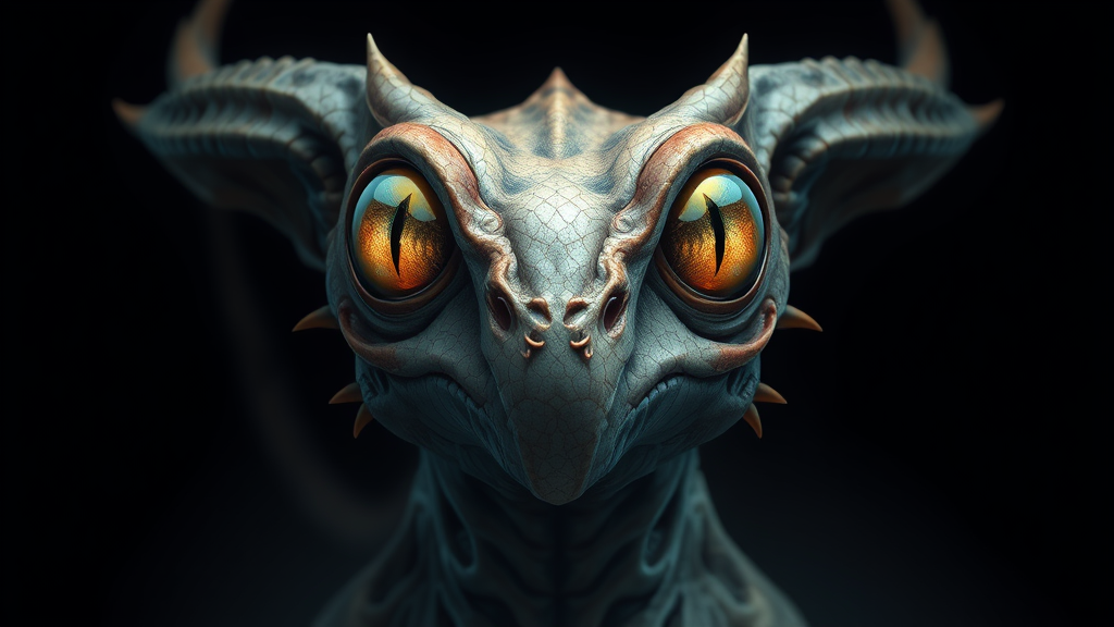 A stunning, ultra-realistic illustration of a creature with mesmerizing eyes on its head, intricately detailed in every aspect. The scene is set with soft, ambient lighting, casting subtle shadows that enhance the depth of features. The dark background adds a contrasting element, emphasizing the creature's unique characteristics. The rendering is high-quality, ensuring no artifacts, blurriness, or distortions are present. The anatomy is flawlessly depicted, bringing a lifelike presence to the creature. There are no distractions such as text, signatures, or logos, allowing the focus to remain solely on the visual masterpiece itself.