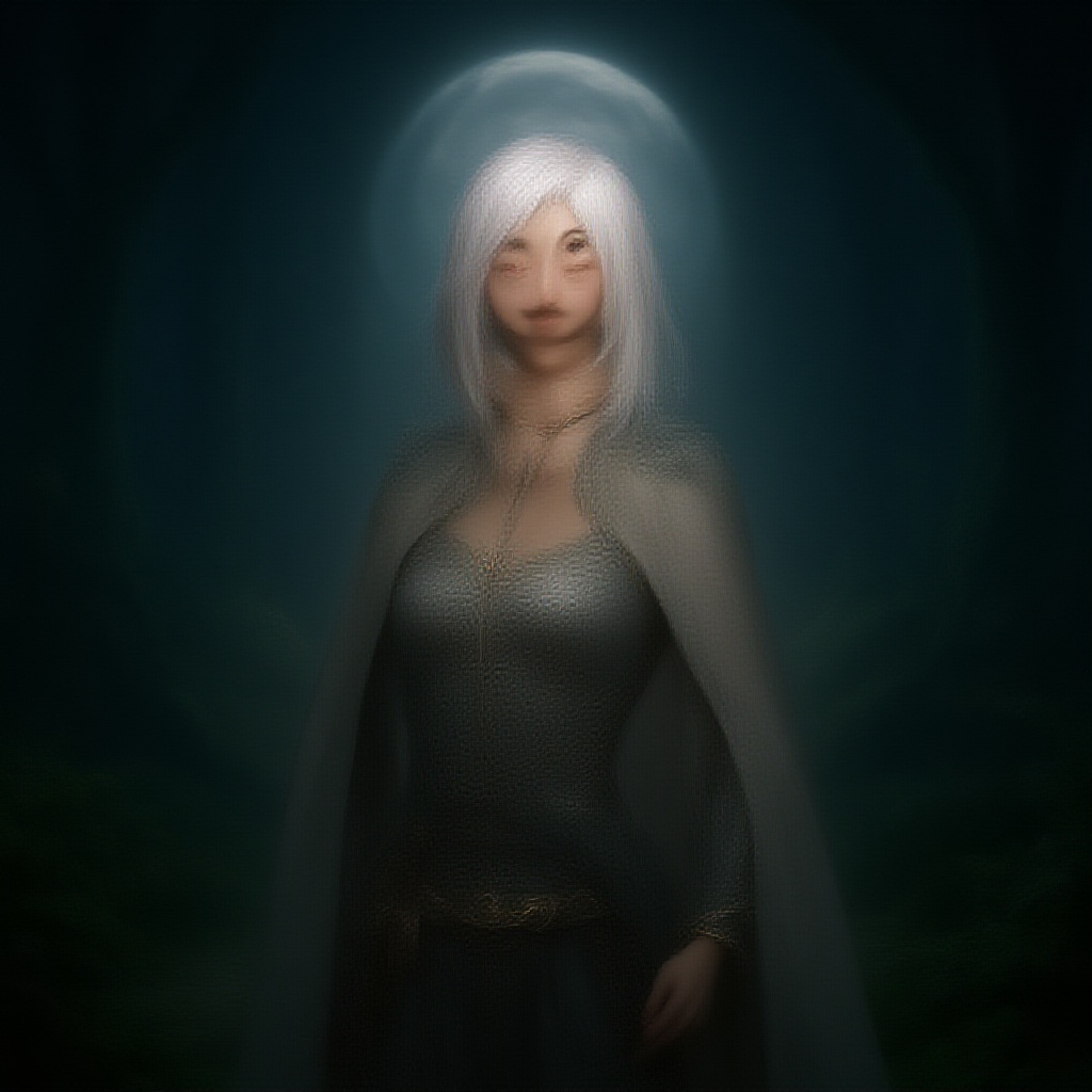 A stunning young Asian queen with short white hair and a beautifully detailed face stands confidently, embodying the regal essence of the queen of the underworld. Her toned midriff is elegantly exposed, and her small bust complements her delicate elegance. She is set against a mesmerizing fantasy backdrop, captured with hyperrealism and cinematic lighting that highlights the breathtaking environment. The setting is reminiscent of a wide-angle, lush landscape, imagined by visionary artists Greg Rutkowski and Magali Villeneuve, brought to life with CGI and 3D rendering. The scene is both ethereal and grounded, avoiding disfigurement or anatomical irregularities and maintaining clarity and focus through exquisite craftsmanship.