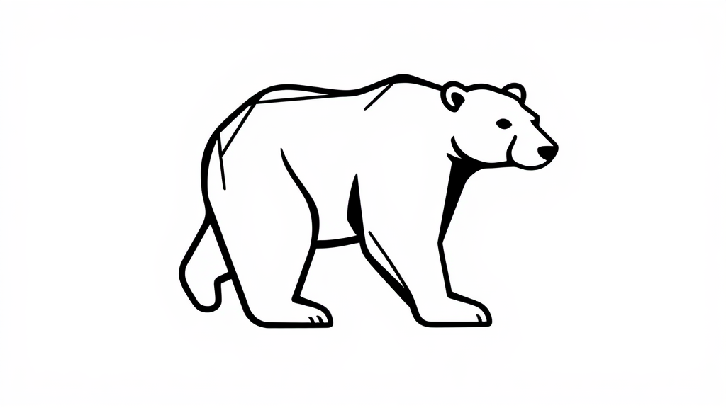 A stylized,,line-art polar bear logo with bold, high-contrast black and white lines, featured prominently on a crisp white background with negative space surrounding it, the image is composed of geometric shapes and thick lines, giving it a simple yet distinctive feel.