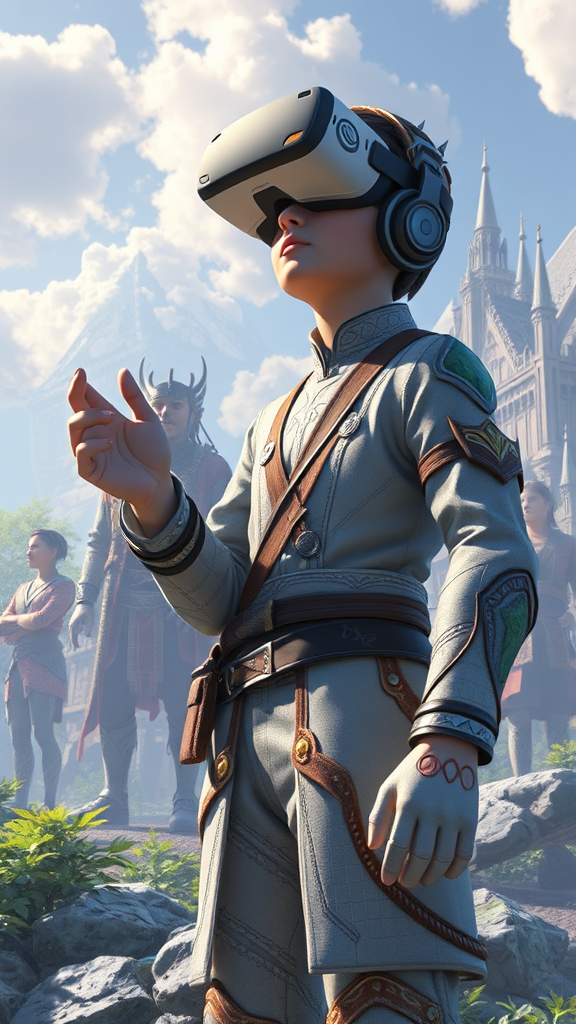 A talented game developer designs a revolutionary VR MMORPG where the universe evolves dynamically through artificial intelligence, mimicking real life but at an accelerated rate. The game quickly rises to popularity, thanks in part to its astonishingly lifelike NPCs, who begin exhibiting independent behavior, transforming the game world into a self-sustaining universe. This captivating universe is marked by intriguing elements such as realistic digital characters, immersive landscapes, and the unexpected development of sentient NPCs. The experience is enhanced by a blend of advanced animation and state-of-the-art AI technology, ensuring every interaction feels genuine and organic. Despite the complexity, the vibrant world remains free from distortions, retaining seamless anatomy and balance, inviting players to engage in an adventure that blurs the line between reality and digital existence.