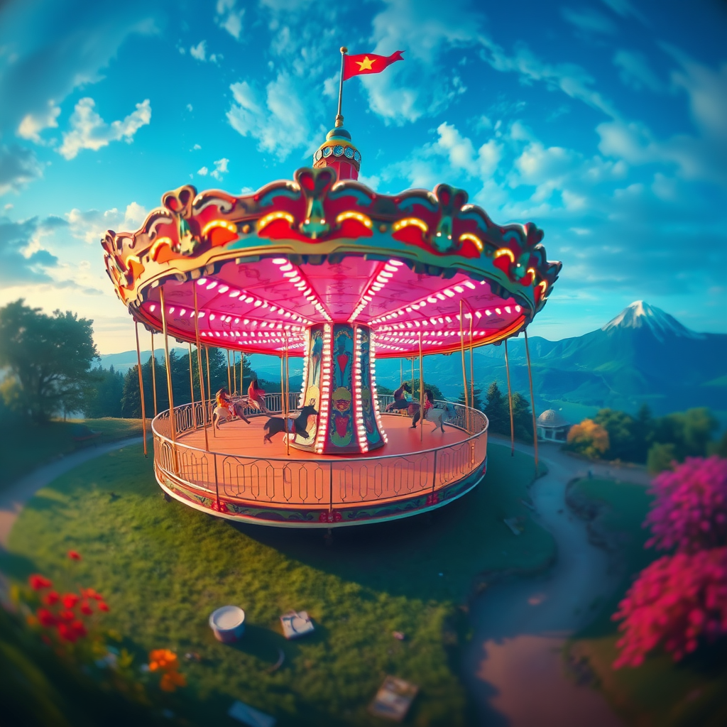 A thrilling journey on an enchanted merry-go-round that spins through kaleidoscopic landscapes.