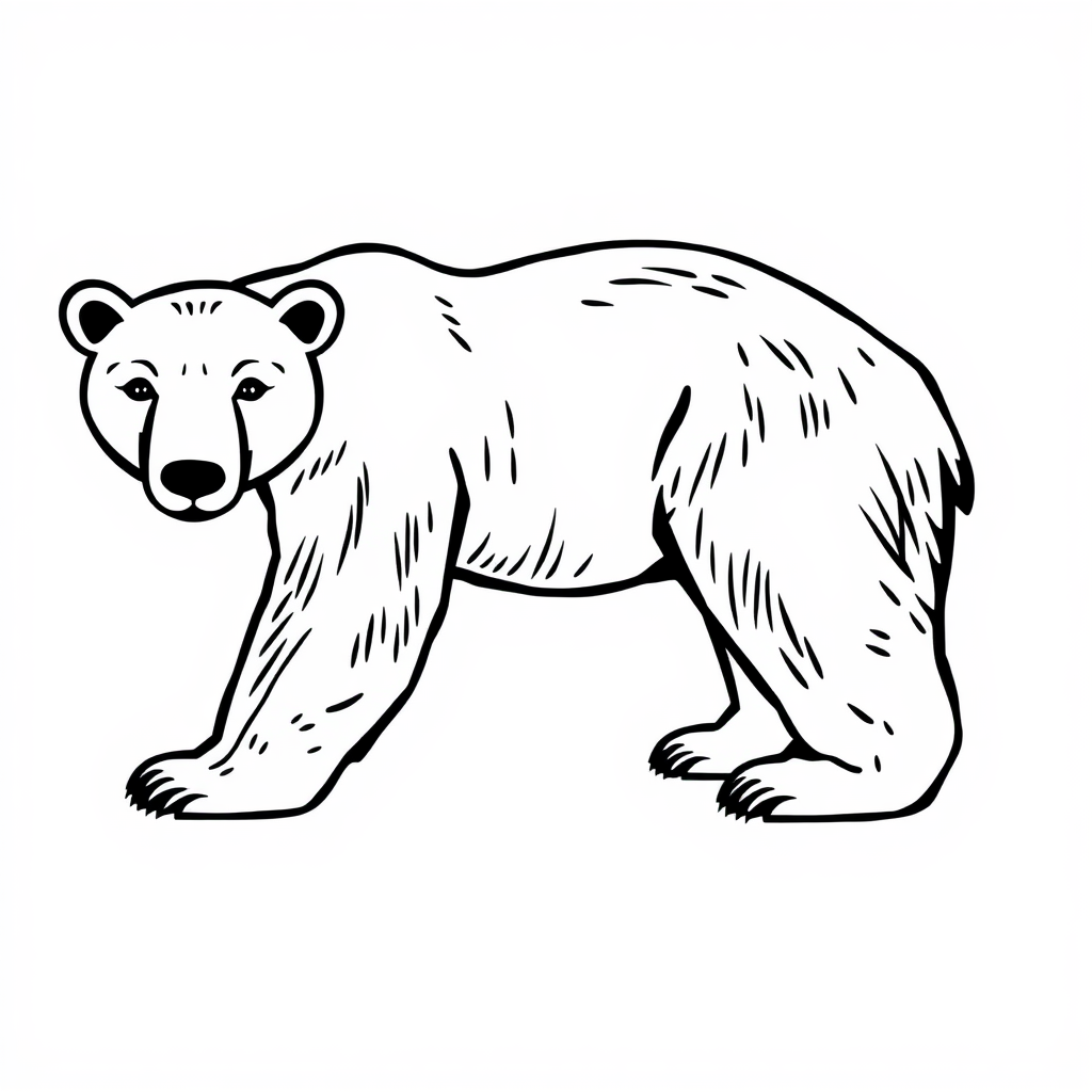 A vector illustration of a polar bear with a unique design, featuring bold black and white outline art with crisp, thick lines. The polar bear is centered and isolated on a white background, showcasing an artistic interpretation with subtle creative embellishments.