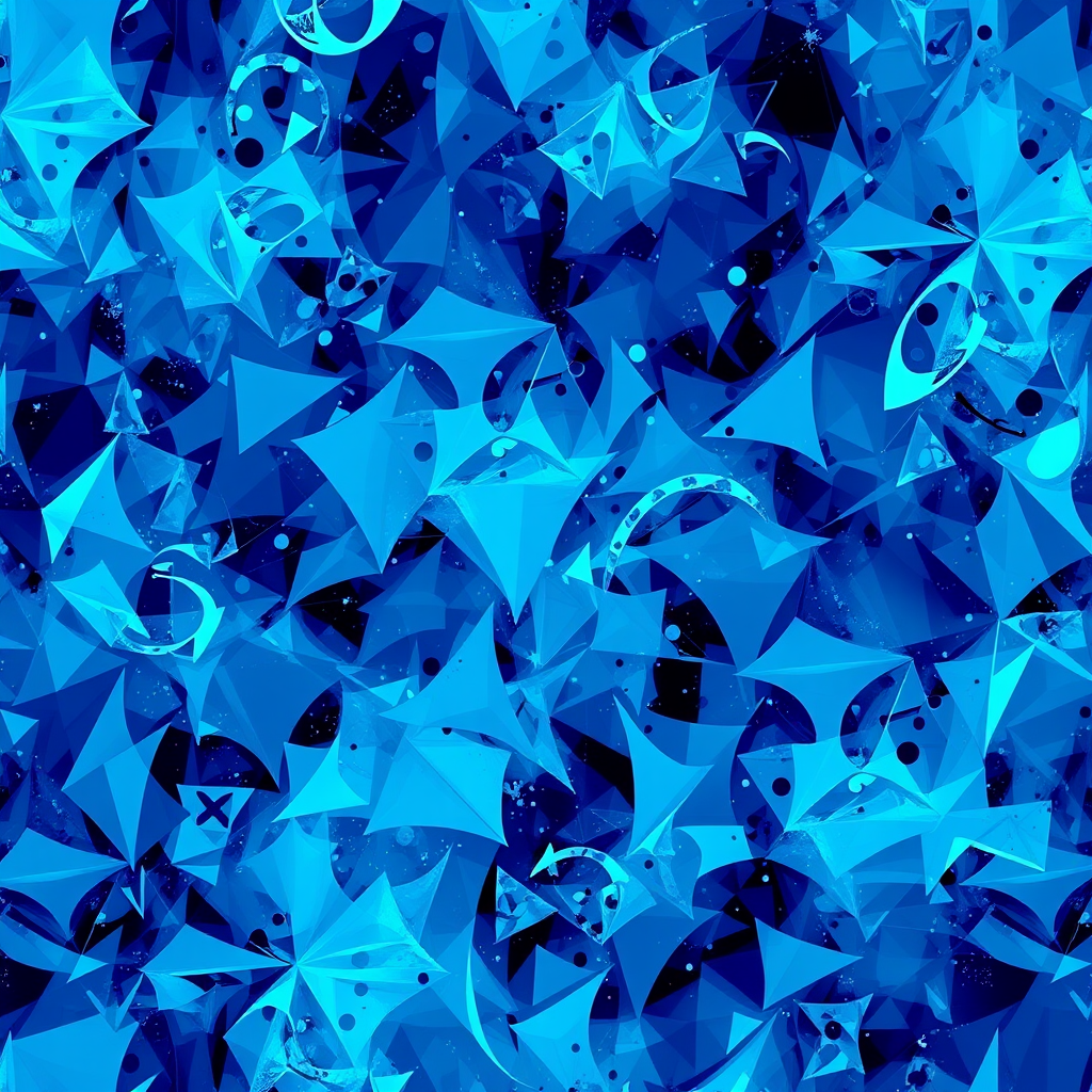 A vibrant abstract image dominated by hues of light blue and deep blue, featuring a complex and rich geometric pattern interwoven with dynamic, floating elements. The image is high-definition, showcasing intricate details across a 32k resolution canvas, where the seamless blend of various shades of blue creates a harmonious and captivating visual experience.
