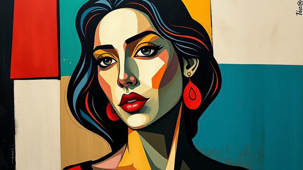A vibrant cubist portrait of a woman, inspired by Pablo Picasso, featuring bold geometric shapes and a rich palette of contrasting colors, capturing a sense of dynamic energy and abstract beauty.