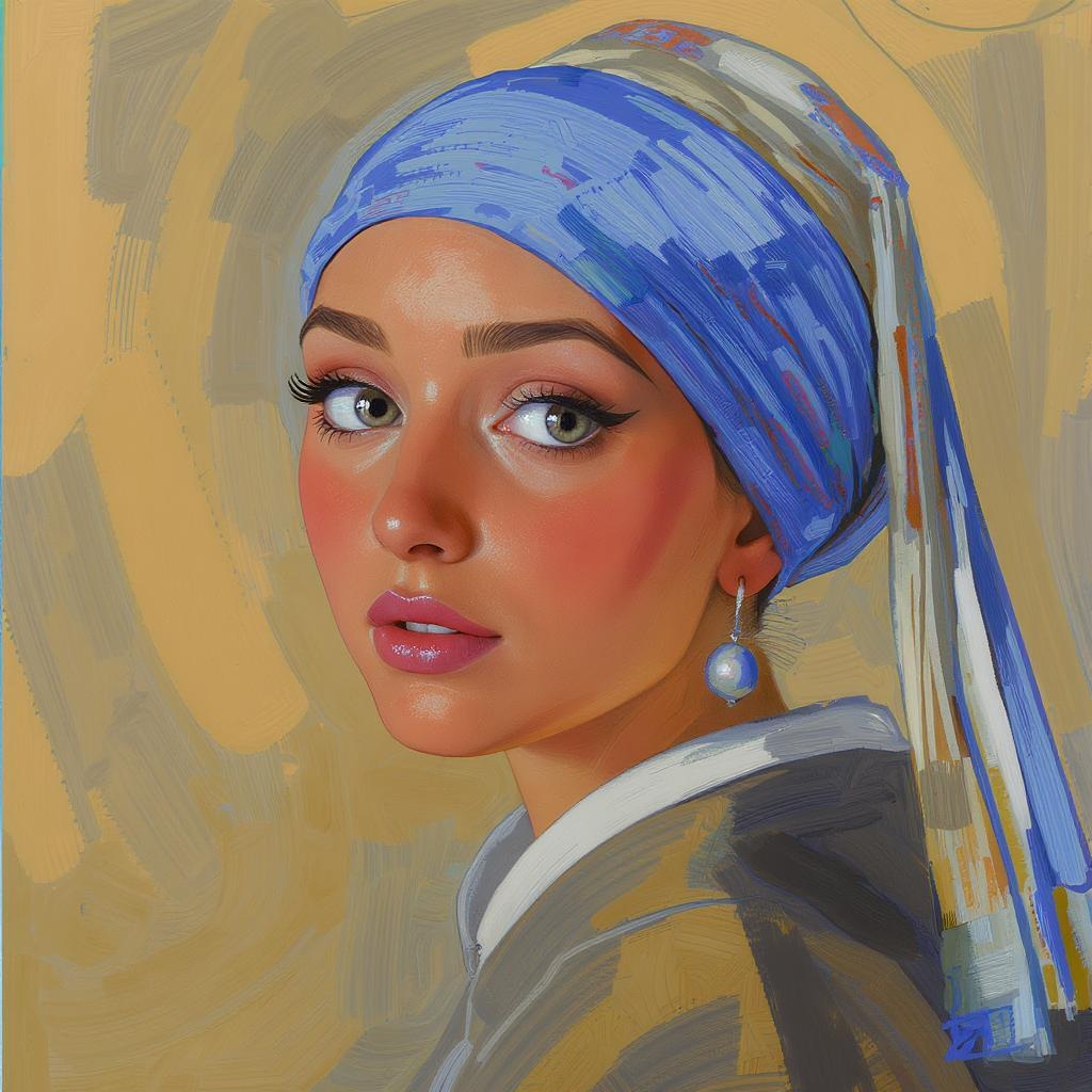 A vibrant digital painting of a woman adorned with a colorful headscarf, showcasing luminous skin and expressive eyes. Inspired by styles like RossDraws and Artgerm, the portrait blends realism with a touch of cartoonish charm. The background is a soft blur, highlighting the subject, while bursts of color bring her features to life. This work captures a fusion of dynamic lighting and detailed brushwork characteristic of RossDraws 2.0, and the smooth lines and bold hues echo the influences of Lois van Baarle and Atey Ghailan, resulting in a strikingly modern and captivating piece.