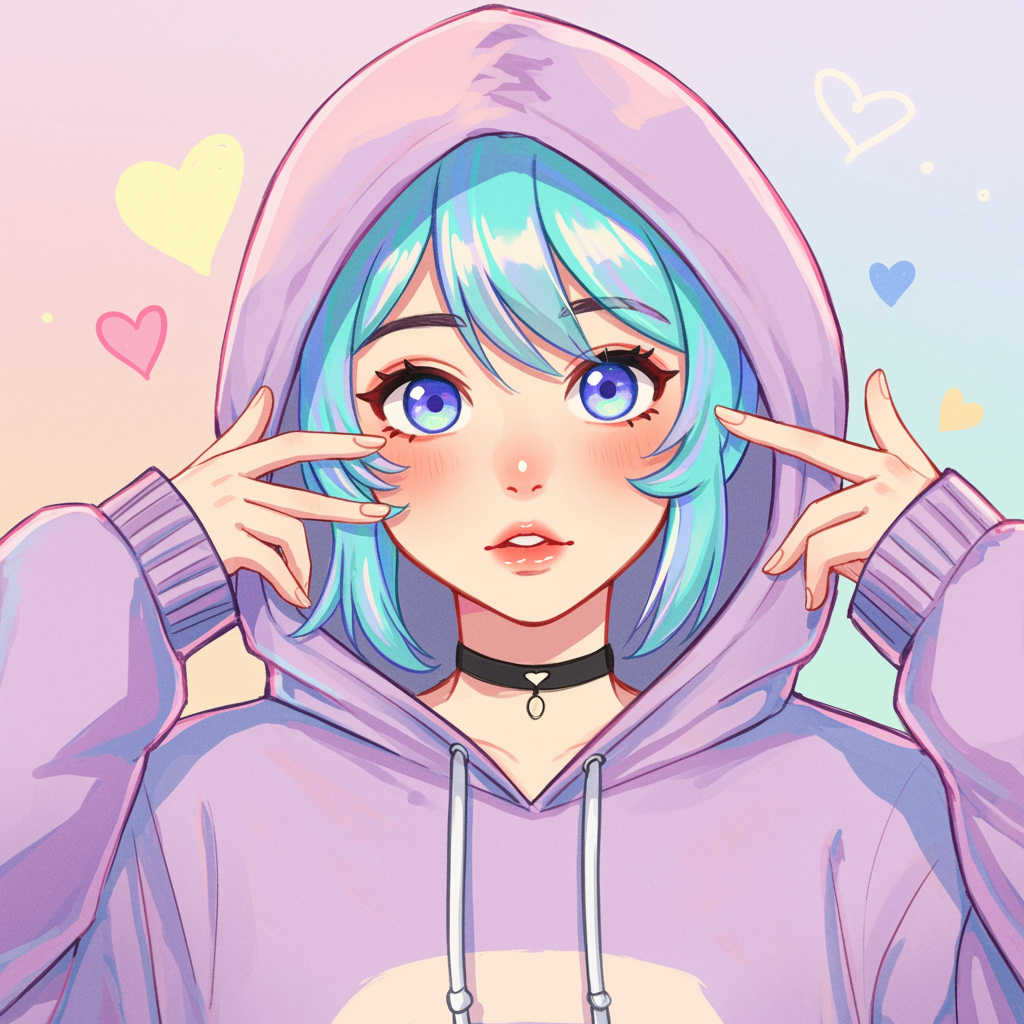 A vibrant illustration depicts a close-up of an individual in a hoodie, drawing inspiration from digital artists like Yanjun Cheng, Beeple, Rhads, and Lois van Baarle. The artwork exhibits a cartoon-like style, infused with bright pastel hues, creating a stunning piece that evokes the charm of a retro anime character. The background features a subtle gradient of soft colors, enhancing the playful and dreamy atmosphere. The subject's expressive eyes and delicate features are highlighted, capturing a sense of nostalgia and whimsy.