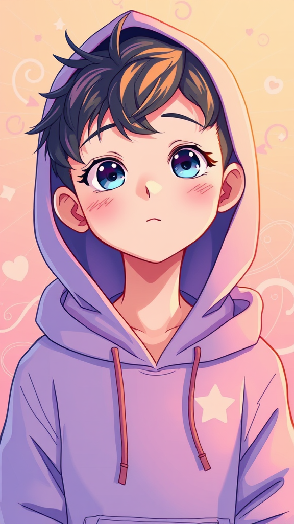 A vibrant illustration of a figure dressed in a hoodie, capturing the essence of digital artists like Yanjun Cheng, Beeple, Rhads, and Lois van Baarle. The cartoon-like style boasts luminous pastel hues, creating a stunning piece reminiscent of a vintage anime character, with unique embellishments such as slightly exaggerated facial features and playful, swirling patterns in the background.