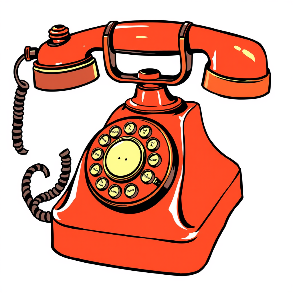 A vintage rotary telephone depicted in a 1930s comic strip style, featuring bold contrasts and vibrant colors reminiscent of Paul Gauguin's art, set against a plain white background, with subtle artistic flourishes to enhance its nostalgic charm.