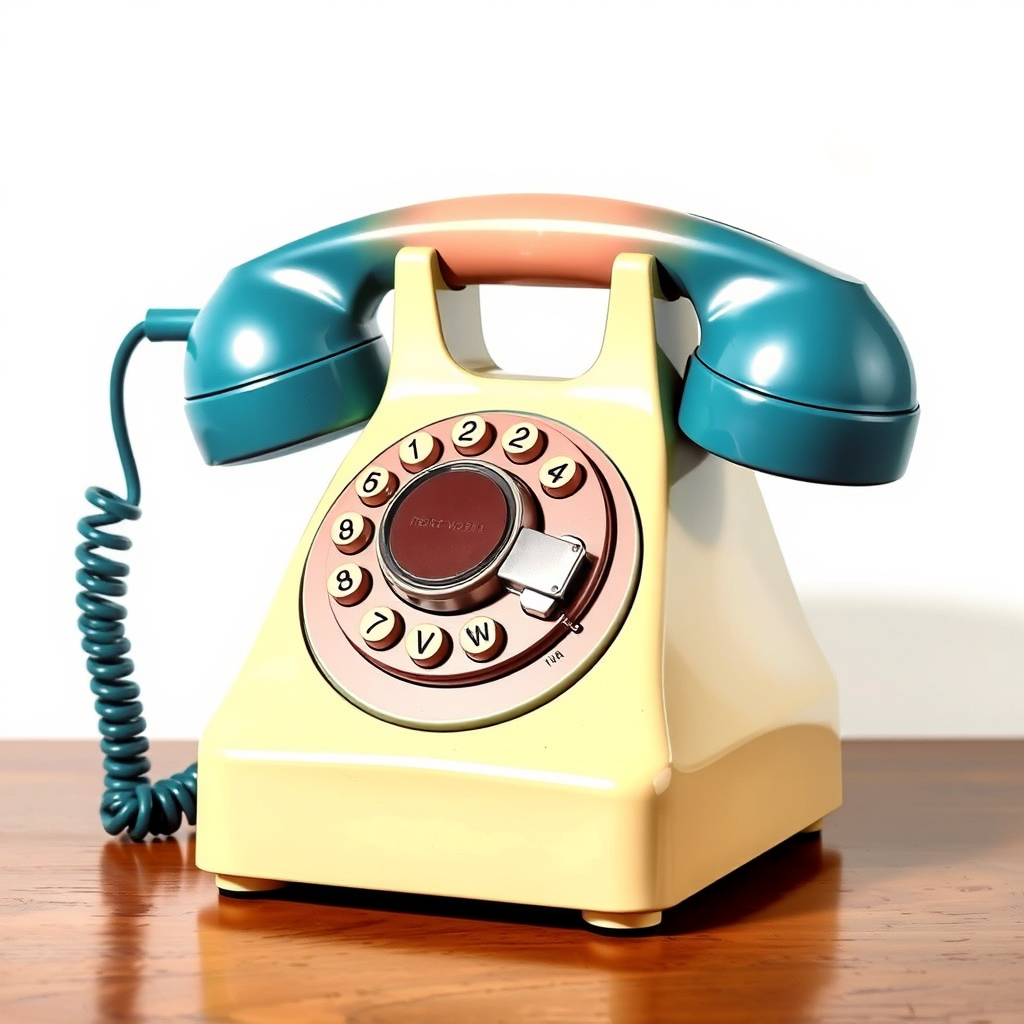 A vintage rotary telephone depicted in a 1930s comic strip style, featuring a bold and contrasting color palette reminiscent of Paul Gauguin's art, set against a white background, subtly reimagined with vibrant hues and whimsical details.
