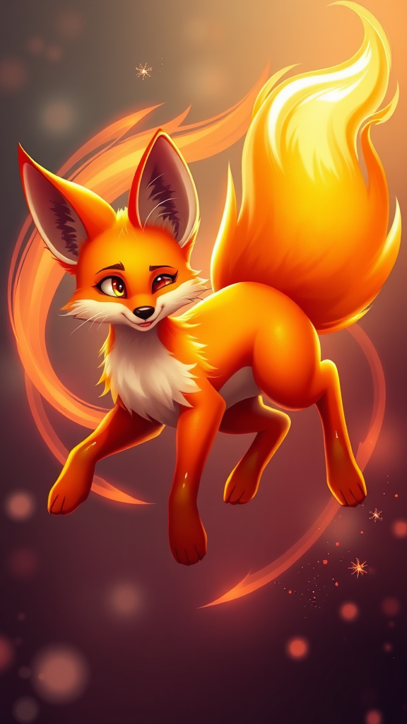 A vivid and animated fox with a sleek coat of fiery orange, its fur shimmering with gradients of gold and deep red, embodying the spirit of a blazing sunset. The fox's eyes are bright and intelligent, gleaming with curiosity and wisdom. Swirling around its agile body is a translucent, ethereal flame-like aura, echoing the iconic Firefox swirl, while its bushy tail leaves a trail of sparkling stardust. Playful yet poised, the fox exudes an air of swiftness and elegance as it moves gracefully through a vibrant digital landscape.