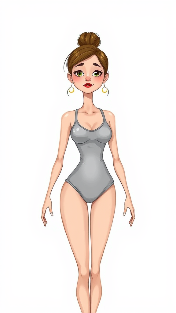 A whimsical illustration of a woman wearing a leotard, set against a clean white backdrop, inspired by the artistic styles of Evalyn_Noexist and AshleyCipher. The scene blends elements of sketch, cartoon, and 3D animation, with soft deformations lending a playful, childlike quality. Her expressive facial features are highlighted with simple makeup, and her form creatively interprets missing limbs in a charmingly imaginative way, drawing on the aesthetics of animated renderings.