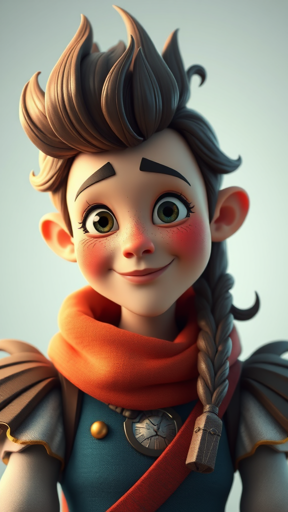 A whimsical portrait of a character in a Disney-inspired style, featuring a 3D render with ultra-high detail and bright yet soft lighting, capturing the essence of a fantastical world. Crafted with best quality for an 8K resolution, it exudes a charming and cartoonish appeal while maintaining a low saturation color palette. The digital painting highlights front lighting to enhance the features of the subject, reminiscent of concept art styles by Peter de Sève and Carter Goodrich, creating a captivating and imaginative piece perfect for trending on Artstation.