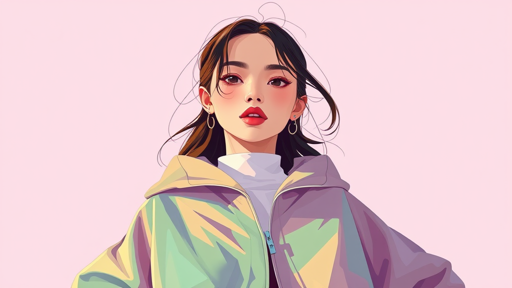 A woman in a contemporary poncho jacket influenced by Duro Olowu, blending Yanjun Cheng's signature style and the lofi girl internet meme aesthetic, captures the essence of a modern muse. This digital artwork, reminiscent of trending designs on Dezeen, combines a catalog photo vibe with a touch of 3D rendering by Beeple, enhanced by the illustrative styles of Rhads and Lois van Baarle. The cartoon-style illustration features bright pastel colors, evoking the charm of retro anime girls, resulting in a captivating and vivid artistic expression.