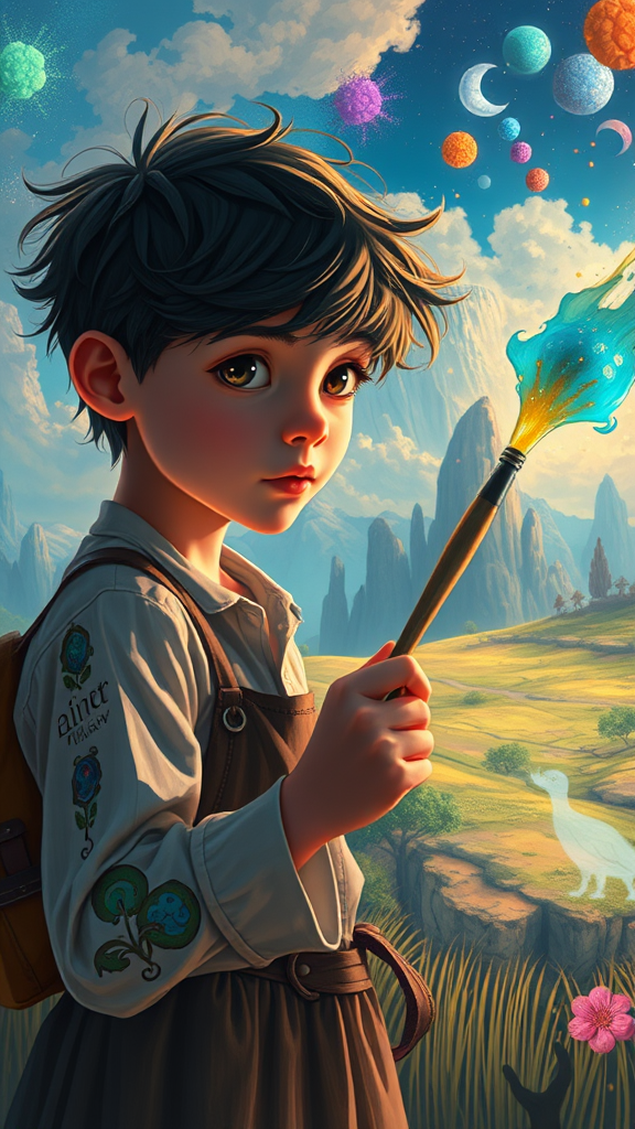 A young artist discovers a mysterious paintbrush that brings their artwork to life, leading them on a journey through enchanted landscapes where imagination blurs with reality.