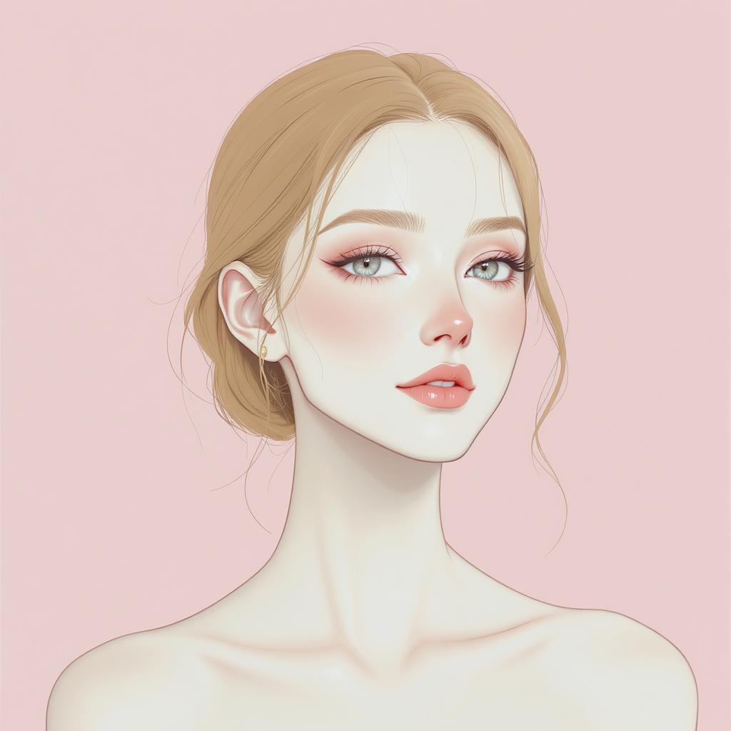 a young woman in a style that is precise and lifelike, showcasing distinctive noses, with a color palette of light pink and light amber, rendered in maya with a velvia touch, exuding calm and serene beauty, featuring flawless line work and gentle stylization, maintaining an aspect ratio of 71:128 for a uniquely elongated composition, version 6 with a stylized level of 750 for heightened artistic expression