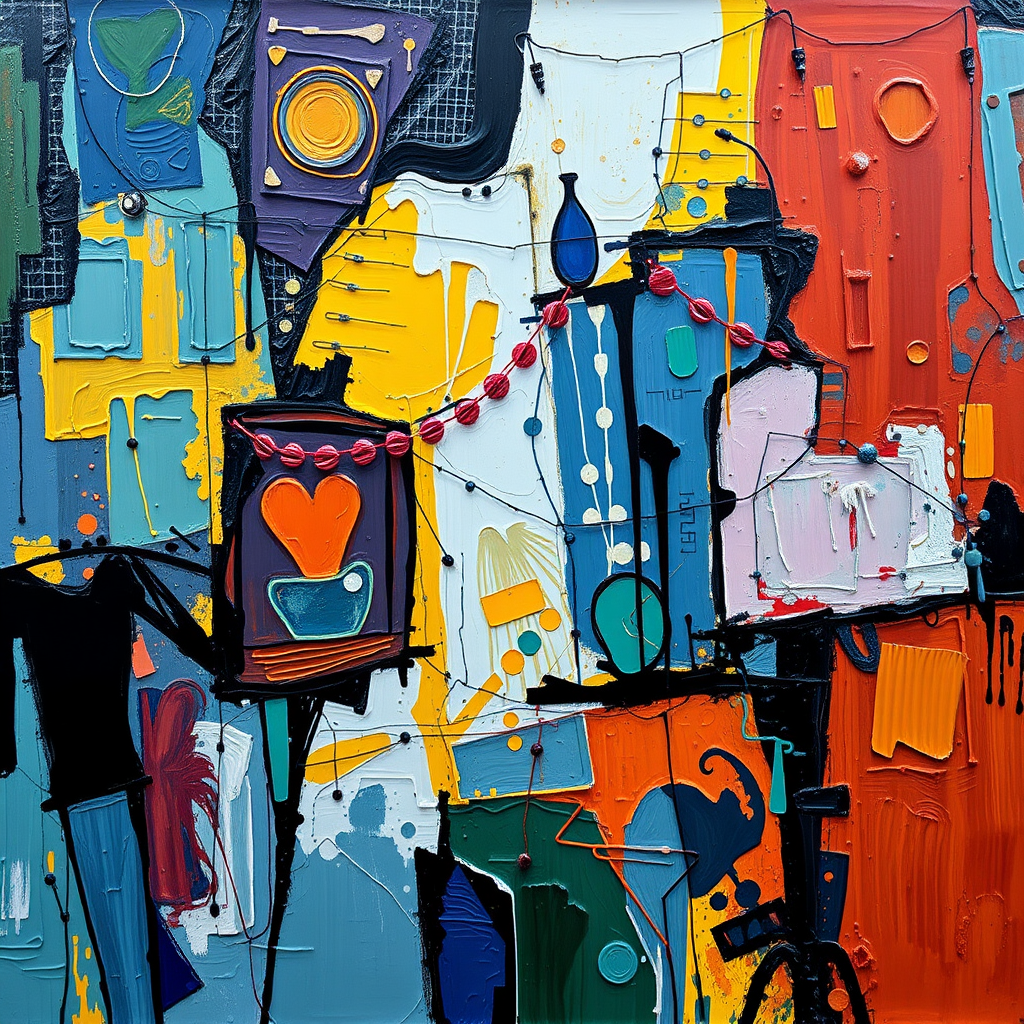 Abstract art inspired by Picasso style with a futuristic twist, rendered in exquisite oil painting technique. The scene is captured in 4k cinematic mode, showcasing a wealth of excessive detail and vibrant color. The artwork is presented in high definition, with an aspect ratio of 9:16, merging classic artistic elements with modern aesthetics for a truly captivating visual experience.