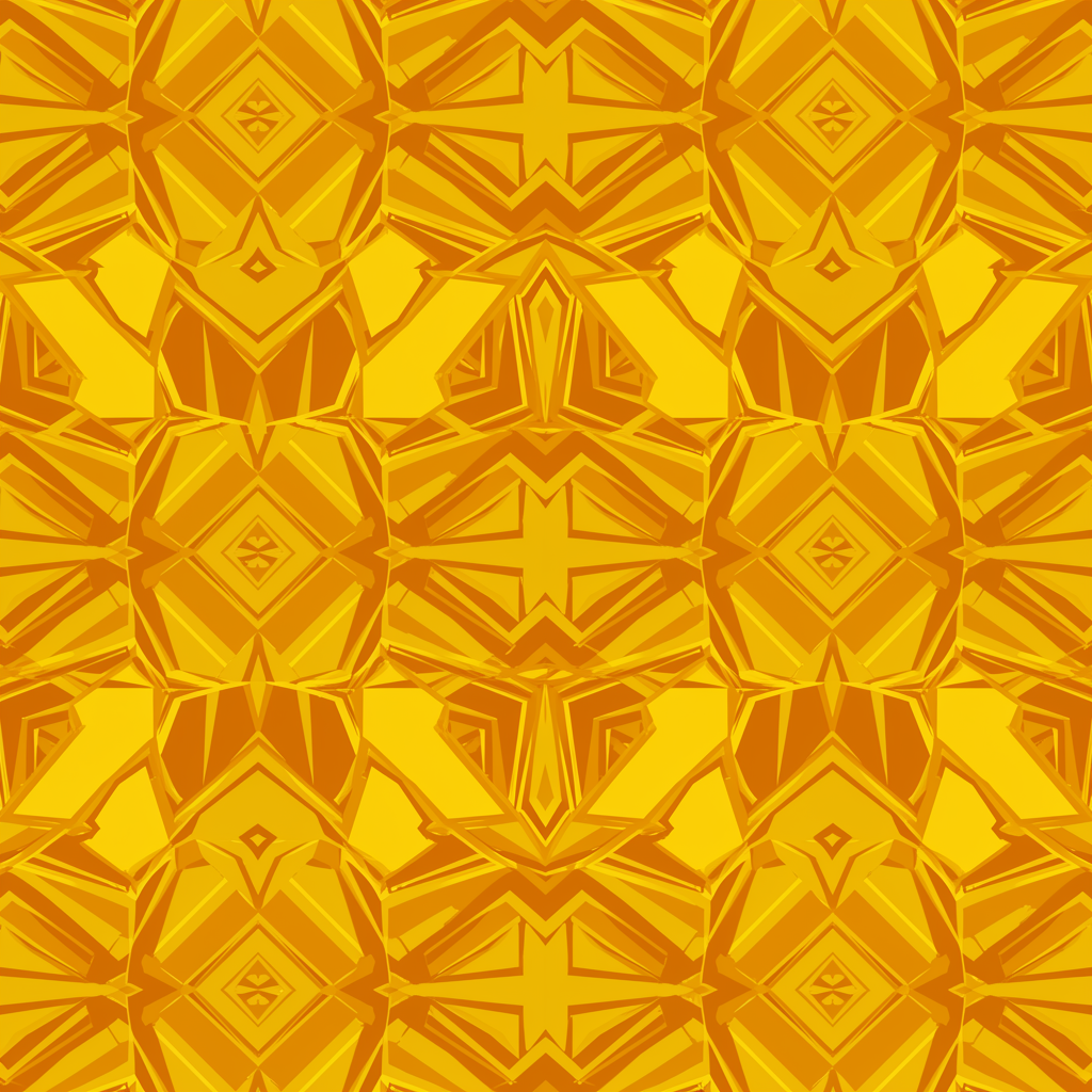 Abstract geometric pattern illustration in a seamless, repeating design, emphasizing the interplay of shapes with a monochrome palette featuring varying shades of yellow and orange, showcasing a blend of complexity and modernity. Incorporate subtle variations and abstractions for a visually engaging and dynamic feel, maintaining a harmonious balance throughout.