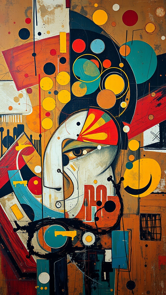 Abstract masterpiece, inspired by Picasso, blending futuristic elements with traditional oil painting techniques, rendered in stunning 4k, cinematic quality. Rich, intricate details create a visual feast, set in a high-definition panorama --ar 9:16.