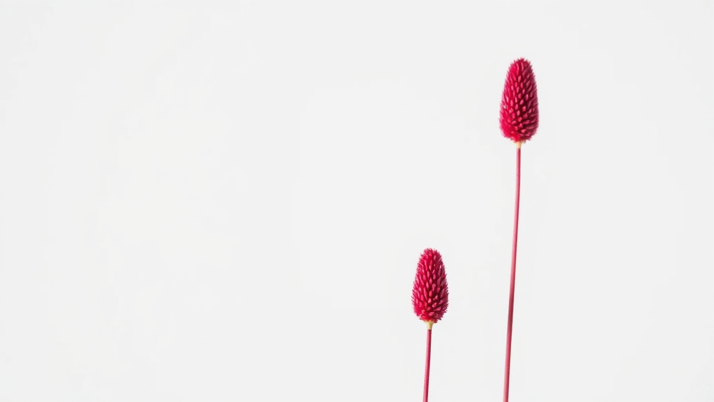 Acclaimed minimalist photograph featuring crimson spikelets against a pristine white backdrop, subtly enhanced with a touch of soft shadowing for depth.