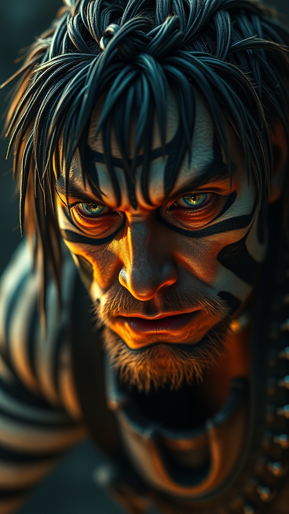 View this AI-generated image featuring an intense action scene unfolds with a stunning beautifully striped hyper realistic character captured in incredible detail appearing as if frozen in time the image is a 4k 8k digital masterpiece that captures the stoic expression of the character framed in a w