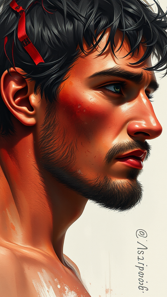 Adam, the first man, depicted with earthy red skin and short black hair, portrayed in a style evocative of biblical and gospel themes. The digital painting combines elements of watercolor and oil, featuring a painterly quality reminiscent of masters like Jeremy Lipking, Antonio J. Manzanedo, and Alphonse Mucha. Influences from artists like Fuller Graves, Bartolome Esteban Murillo, JC Leyendecker, Craig Mullins, and Peter Paul Rubens are present, all contributing to a detailed and highly realistic composition. The artwork boasts a CGSetivity aesthetic, exemplifying ArtStation's HD high detail and photorealism trends, with concept art attributes. This official art piece is designed to be a standout on ArtStation, showcasing 8k resolution and trending styles.