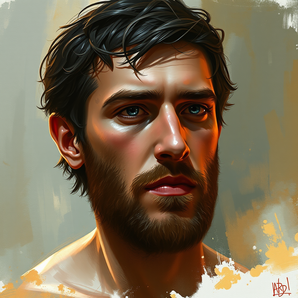 Adam, the inaugural human, depicted with a warm reddish tone to his skin and short, dark hair reminiscent of biblical tales and gospel stories. A digital painting infused with the fluidity of watercolor and the richness of oil, capturing a painterly essence influenced by Jeremy Lipking, Antonio J. Manzanedo, Alphonse Mucha, Fuller Graves, and Bartolome Esteban Murillo. The work embodies the dynamic style of JC Leyendecker and the atmospheric depth of Craig Mullins, channeling the opulence of Peter Paul Rubens. It showcases a detailed painting style combining classical and contemporary influences, with a hint of CGSetivity. Presented in ArtStation HD with a focus on high detail and photorealism, reflecting the latest trends in concept art and official art circles, rendered in 8k for a visually stunning composition.