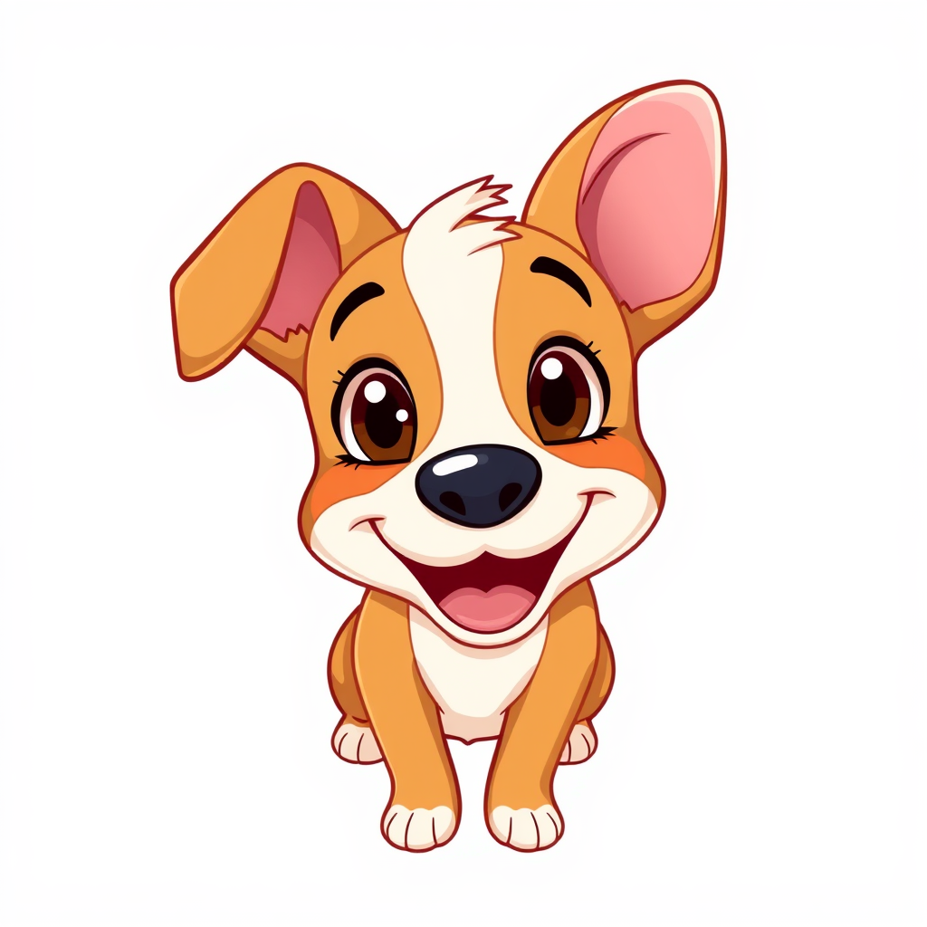 Adorable cartoon dog happily looking at the viewer, featuring bright eyes and a joyful expression in a playful vector style illustration.