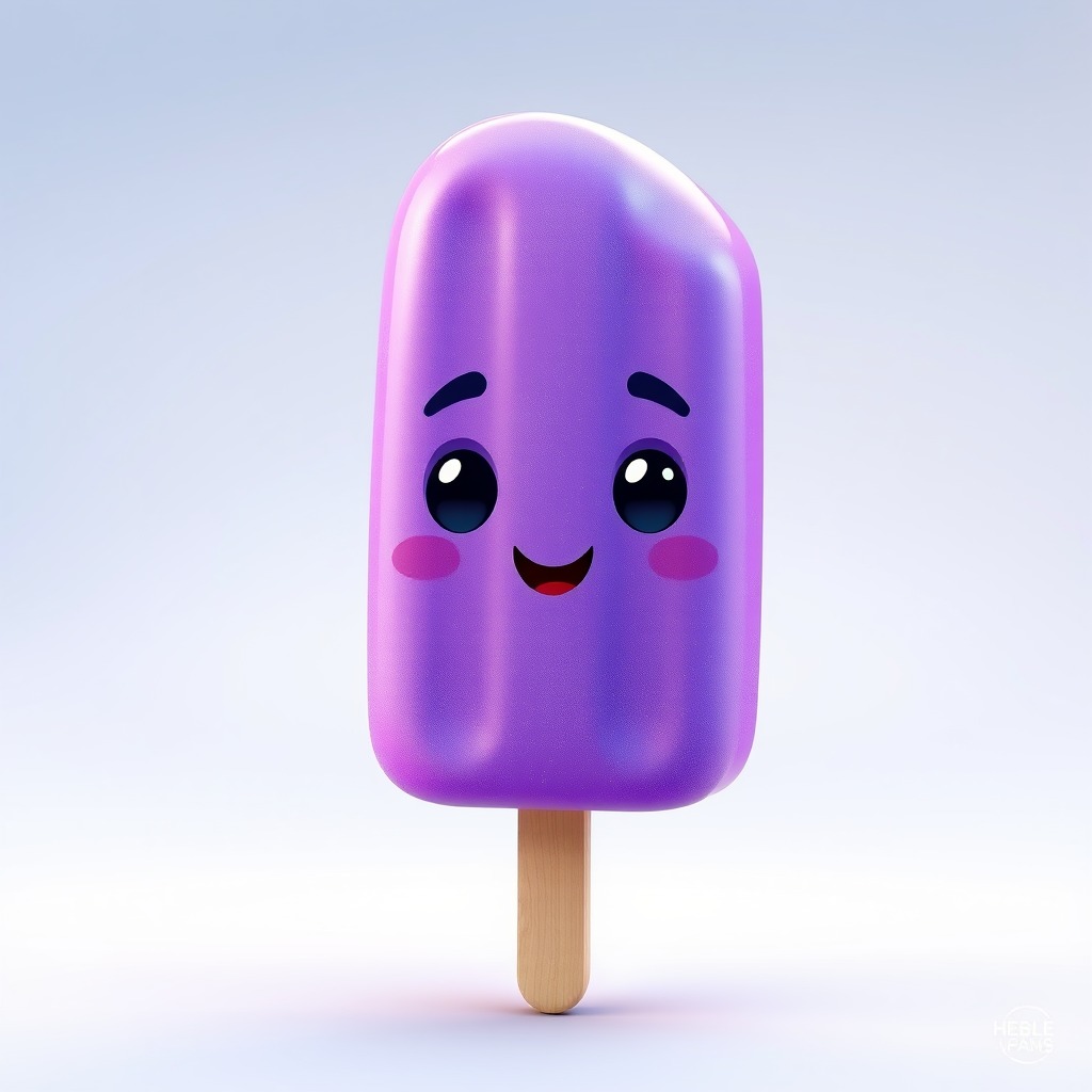 Adorable popsicle character from a mobile game, ultra-realistic, rendered with octane at 5k resolution, cartoon-style, vivid purple hue, featuring a playful expression and glossy sheen with subtle icy texture details.