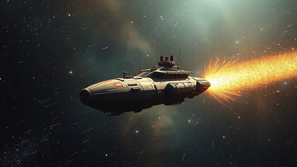 Adventure-bound vessel soaring through the cosmos, leaving a trail of stardust in its wake.