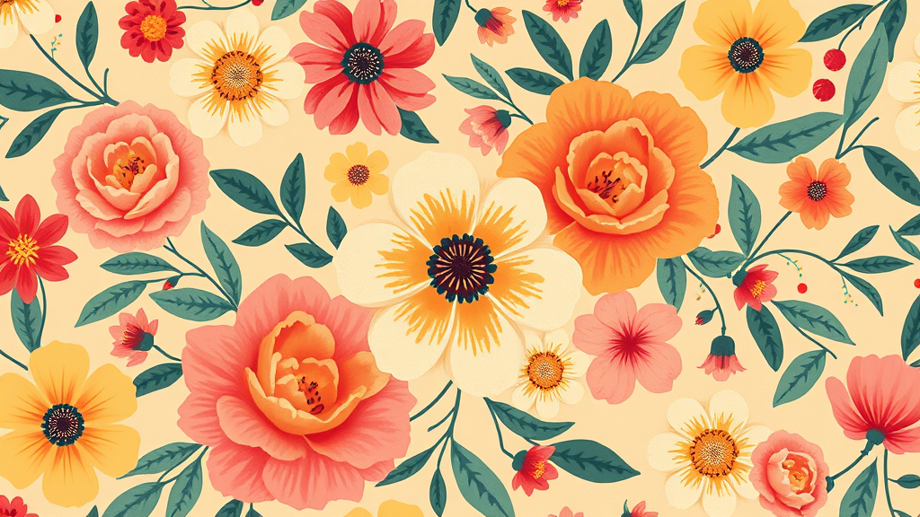 Aesthetic floral design with a vintage touch, featuring a vibrant array of colors in a minimalist pattern, aspect ratio 2:3, high quality with smooth details.
